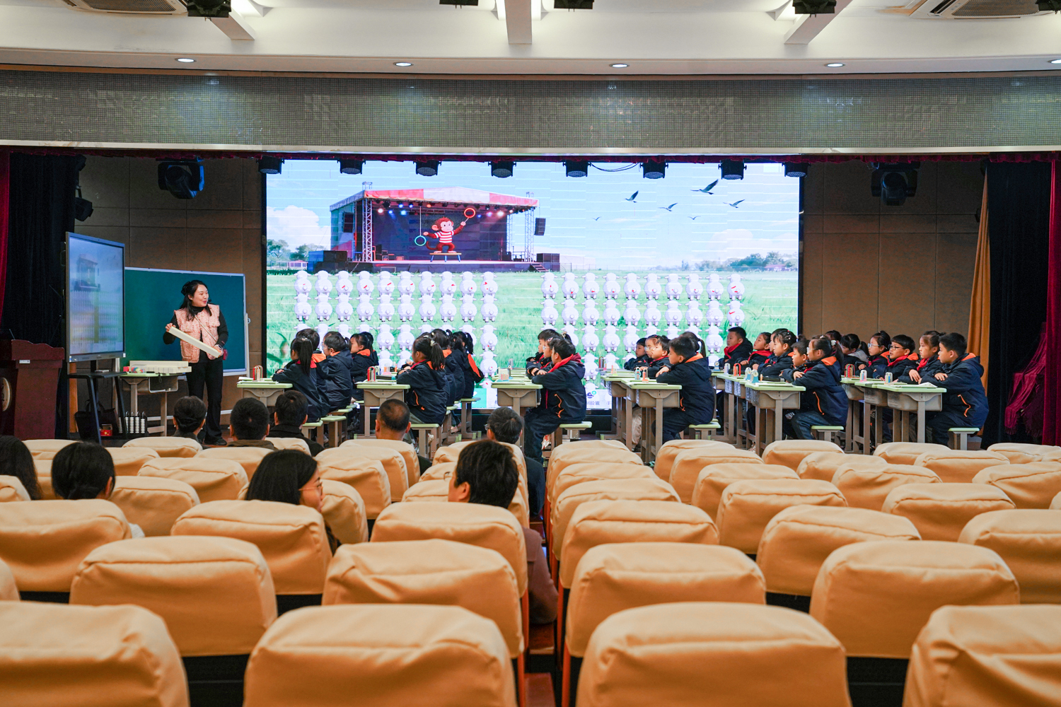 校园内,“七彩园”“栖采亭”古意盎然,“草船借箭”“飞屋环游记”等主题场景栩栩如生。沉浸式阅读区内,孩子们或围坐讨论,或自由创作,在互动体验中亲近文字、感悟书香;乐跃场上,伴随着激昂的旋律,罗塘“乐娃”们身着统一服装,手持彩球完成整齐划一的动作。跳跃、旋转、队形变换,每一个姿态都充满力量与美感,传递出少年蓬勃向上的精神风貌;乐学园、乐艺苑的舞台上,艺术之花尽情绽放。合唱《少年中国说》铿锵有力,古筝合奏《渔舟唱晚》悠扬婉转,课本剧《满江红》情感真挚…… 孩子们以歌、画、舞、剧等多元表现形式,展现了扎实的艺术素养;数字艺术室内,AI技术与音乐教学碰撞出新火花,学生们体验科技带来的艺术新体验;报告厅里,数学思维展示趣味十足,学生们通过逻辑推理、小组辩论等形式,将抽象的数学知识转化为直观可感的思维游戏。