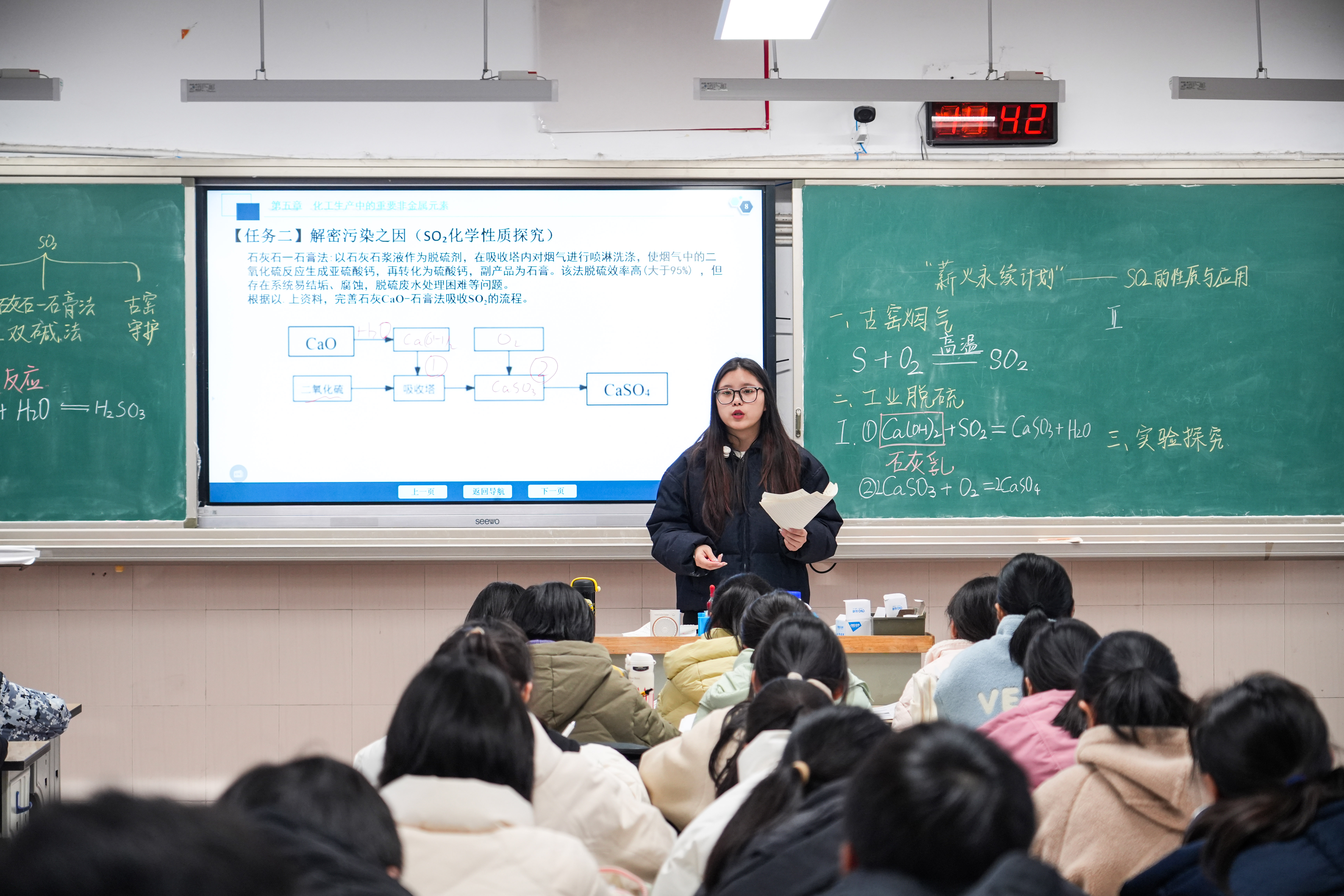 同课异构教学展示环节,六位教师分别执教了小学数学《用字母表示数量关系》、初中英语《Integration A-C》、高中化学《二氧化硫》,并围绕“AI 如何赋能备课、授课”进行说课,分享了学科智能体在学情分析、资源整合、互动反馈等环节的应用经验。