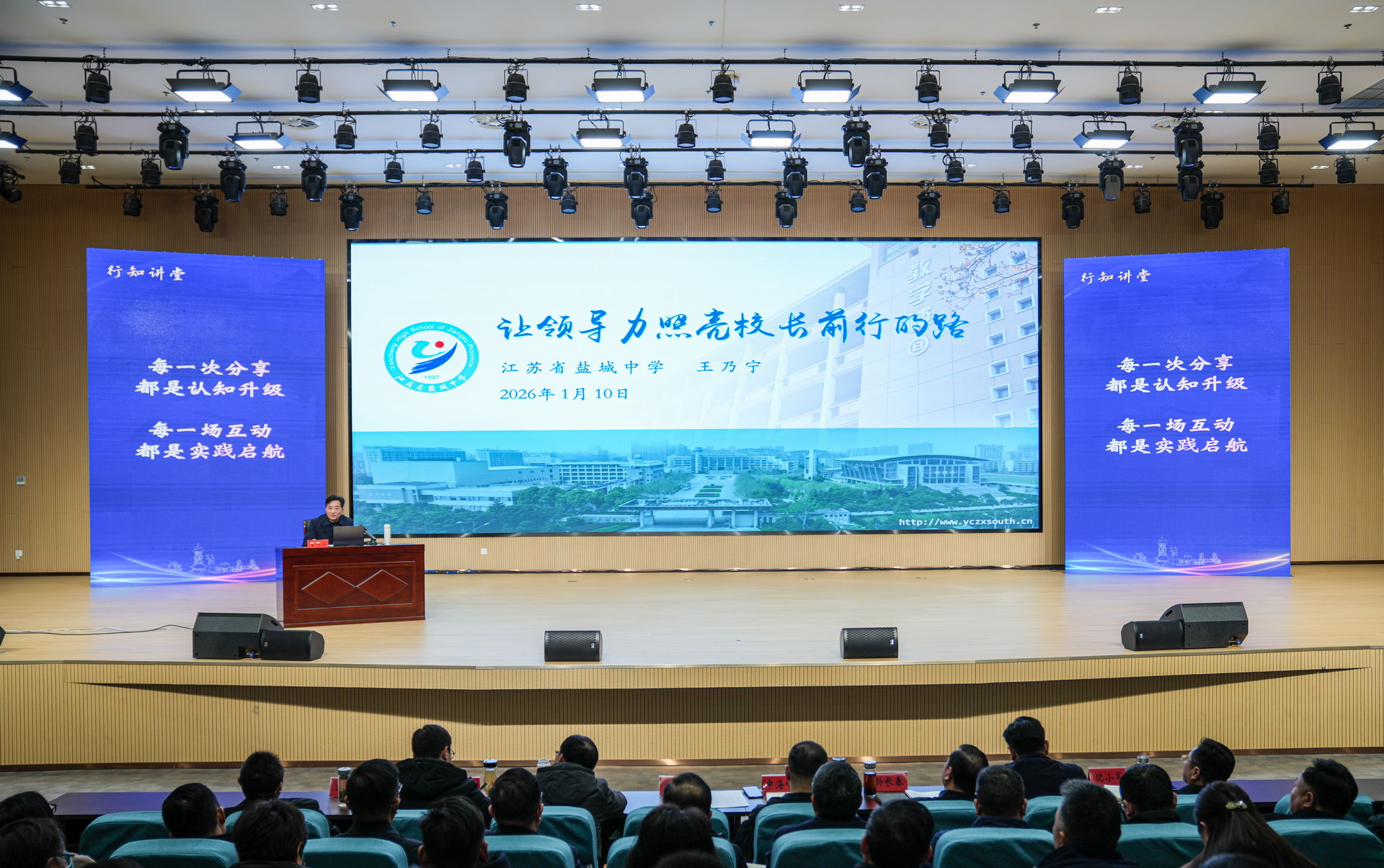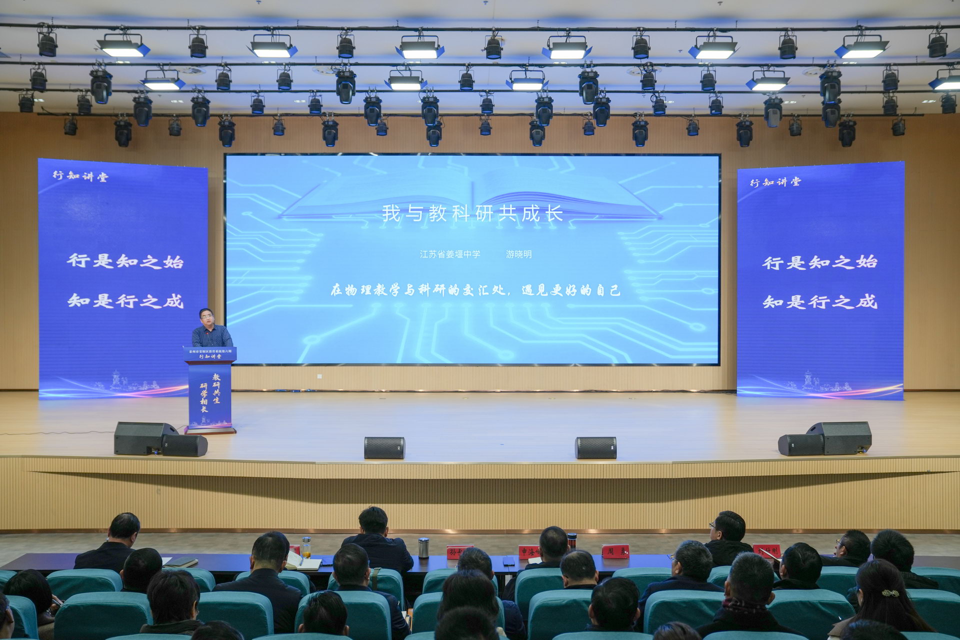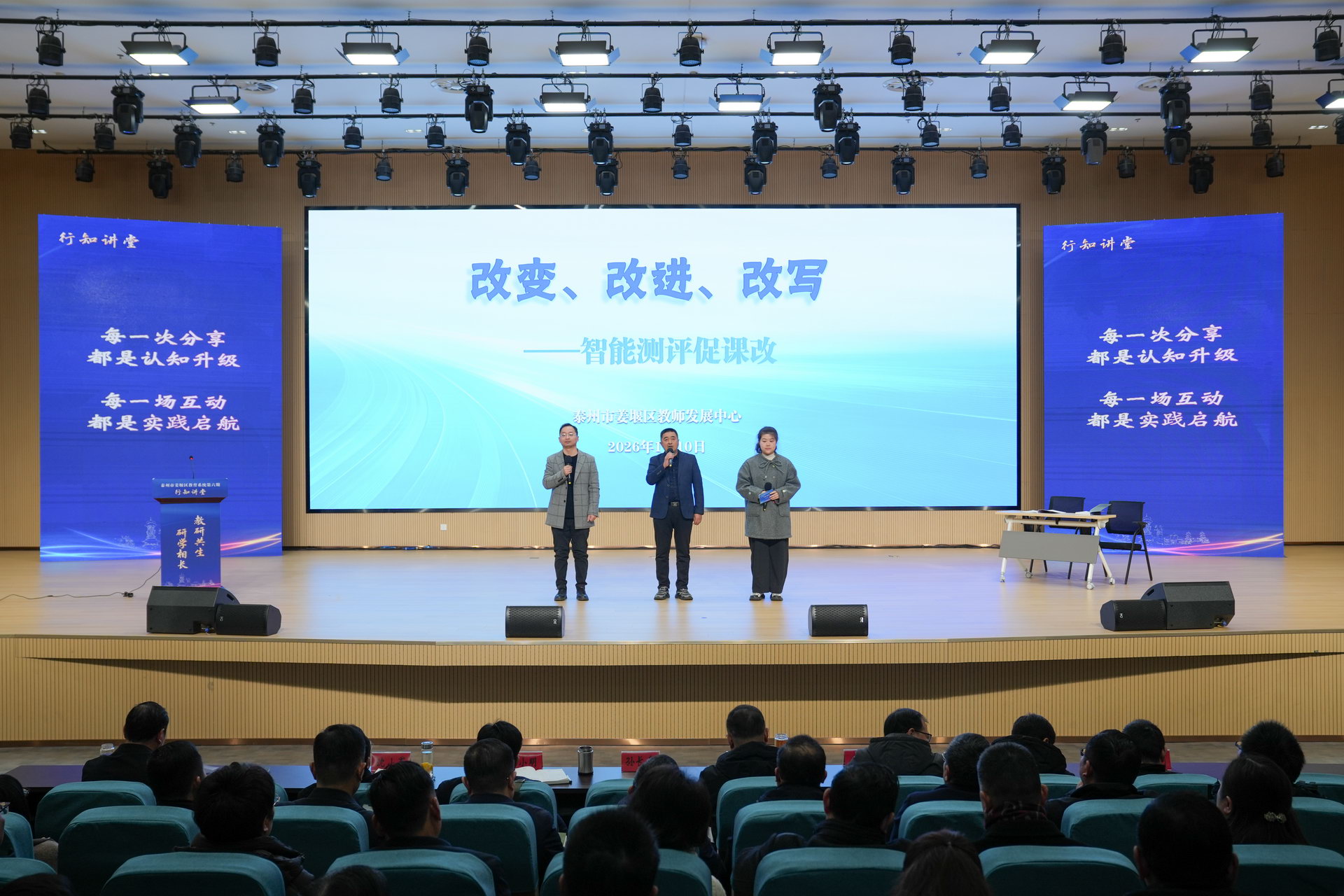 1月10日,姜堰区教育系统举办第六期“行知讲堂”活动。本次活动以“教研共生 研学相长”为主题,区教育局班子成员,各学校书记、校长(园长)、分管教科研副校长(副园长)、教科室主任,高中学校分管教学副校长、教导处主任,各民办教育机构主要负责人,局机关各科室负责人、教科研部全体成员参加。活动由区委教育工委副书记、区教育局副局长孙长春主持。