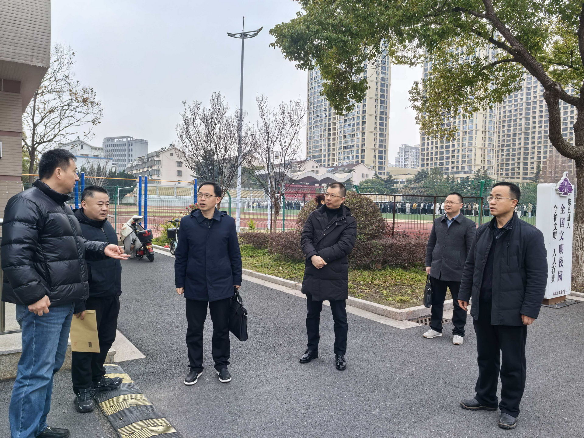 校园安全是教育发展的坚实根基,是学生成长的首要保障。走访组实地查验安检门、防冲撞设施等物防装备,核验校园监控联网、校车规范管理等技防成效,细致核查护校队建设、全员导 师制落实等人防工作,同时对校园“护学空间”打造、周边环境综合治理等外部防线进行从严督导。
