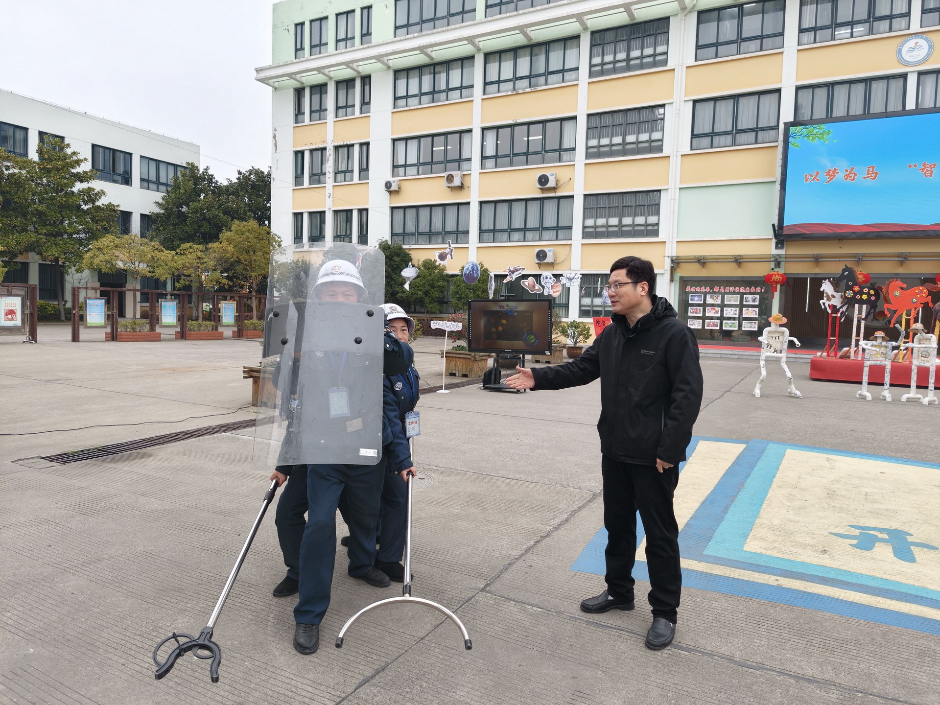 以人防为核心、物防为基础、技防为支撑,姜堰区全力构建“校内精准防控+周边综合治理+应急快速保障”的立体化安全防护体系,实现校园安防从单点防御到全维度、系统化护航的全面升级,为师生成长撑起坚实“安全伞”。