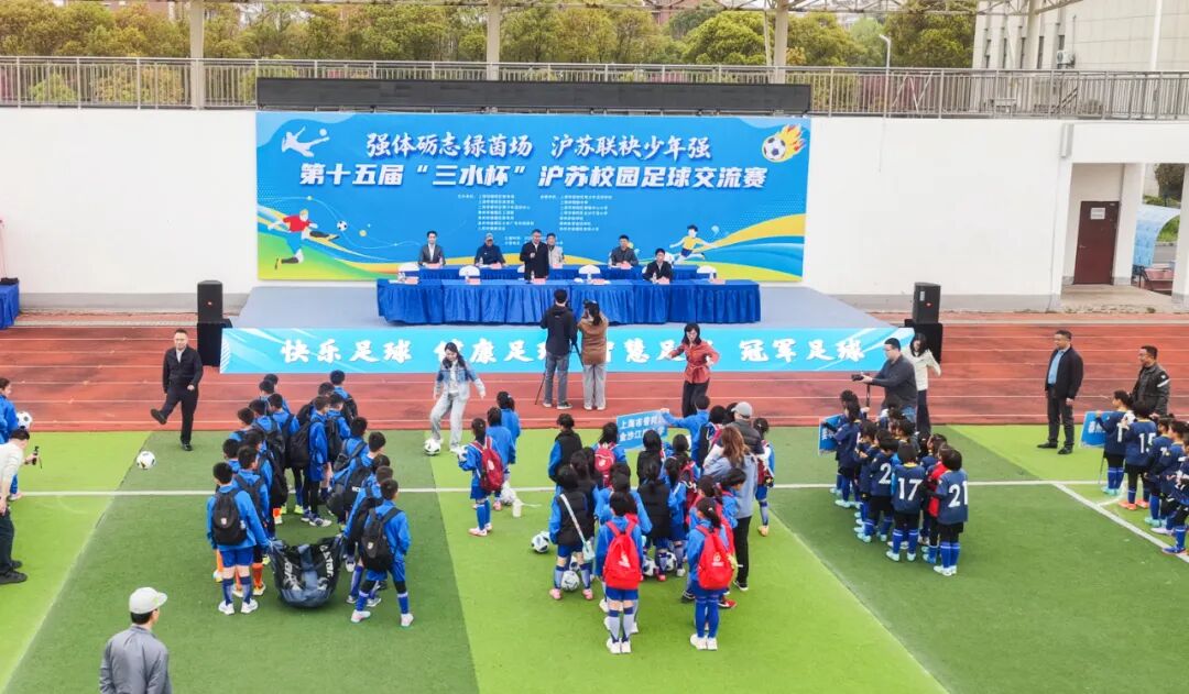 4月6日,第十五届“三水杯”沪苏校园足球交流赛在姜堰区淮海小学举行。普陀区教育局副局长杨云、普陀区体育局竞体科科长钱晓玲、普陀区青少年活动中心副主任龚正权、普陀区青少年足球学校校长张翔,姜堰区委常委、宣传部部长陆锋,姜堰区政协副主席、工商联主席戴忠全,姜堰区委教育工委书记、区教育局局长申海峰,姜堰区文体广旅局局长丁红梅,上海市姜堰商会会长周正明,上海市姜堰商会党支部书记黄宝生以及参赛学校校长、教练及球员代表等参加开幕式。