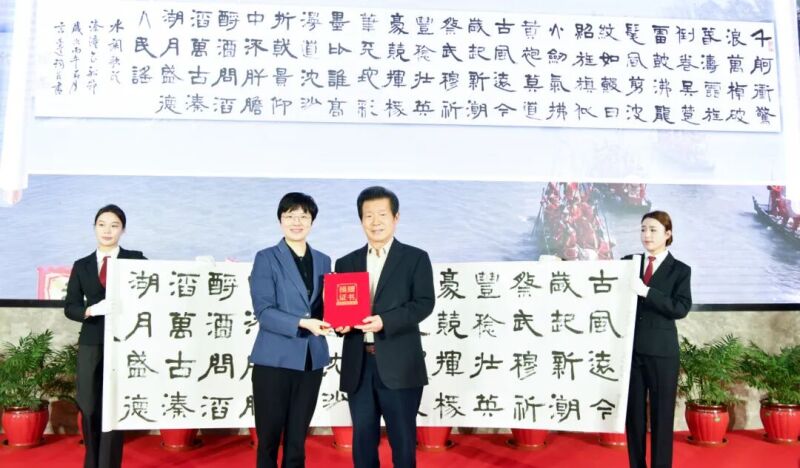 言恭达向我区捐赠《水调歌头·溱潼会船节》6.5米汉隶长卷